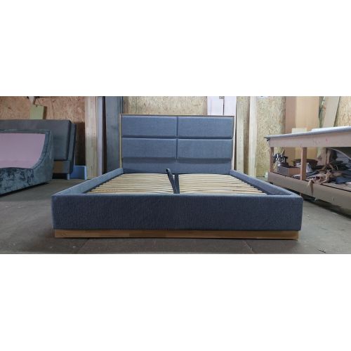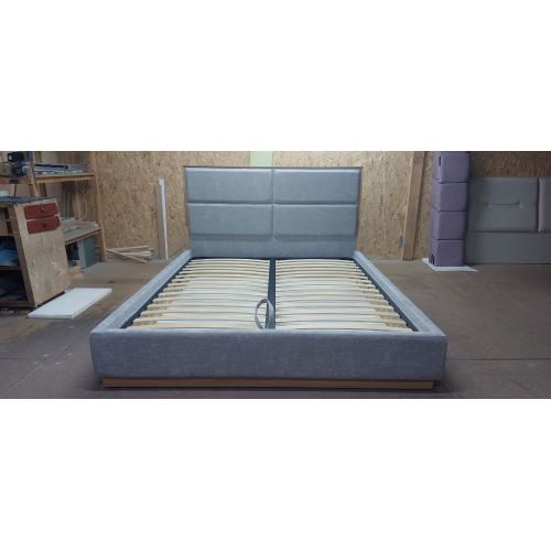 Опоры кровати - ножки из массива клена или ясеня. По низу короба деревянная фрезерованная накладка.