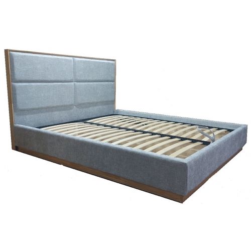 В модели используется пневматический подъемный механизм и соответственно есть ниша для хранения вещей. Прочности кровати придает металлическая рама с буковыми ламелями шириной 5,5 см и на расстоянии 5,5 см, которые служат надежным основанием под матрас