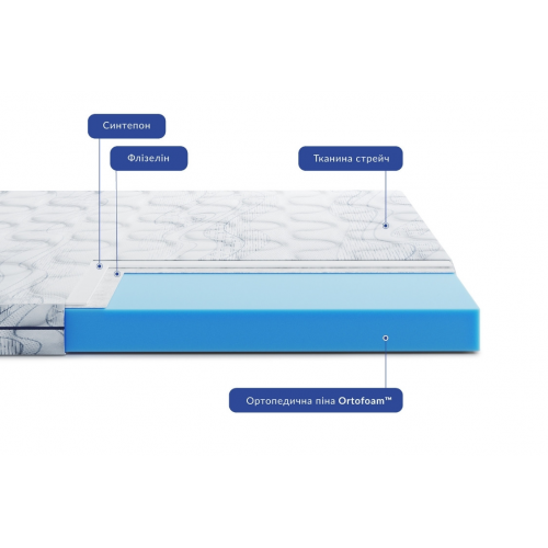 Ortofoam™ екологічно чистий матеріал, що забезпечує комфортне та природне положення тіла. Структура комірок пінополіуретану Ortofoam™ оптимально розподіляє навантаження, дає змогу вільно циркулювати повітрю всередині. Чохол матраца зі стьобаного жакарду відрізняється підвищеними показниками зносостійкості